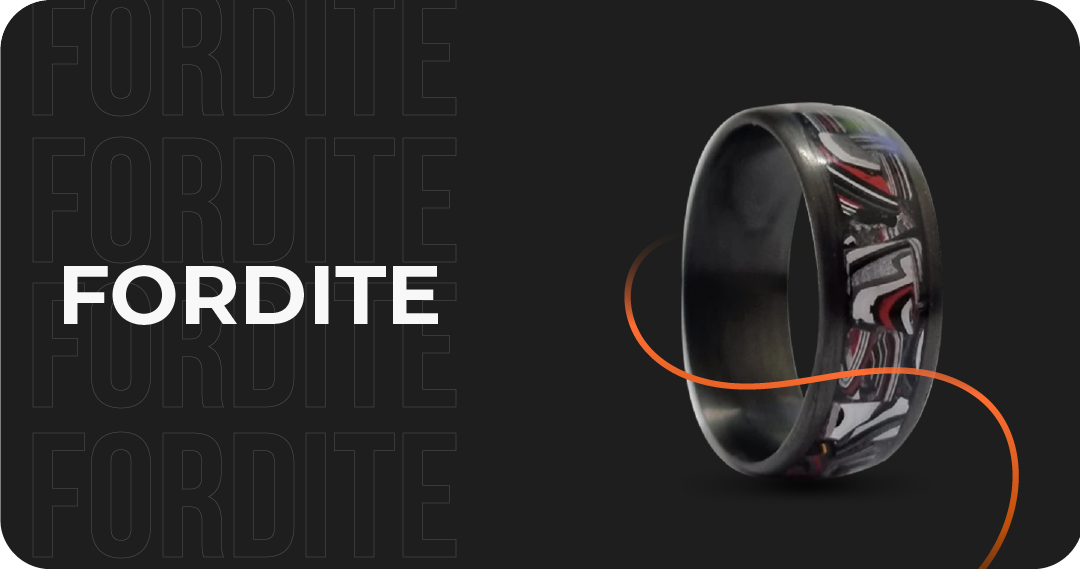 Experience the beauty of American industrial history with our Fordite Ring collection, featuring unique designs crafted from reclaimed Fordite, also known as "Detroit Agate", a rare and vibrant material.